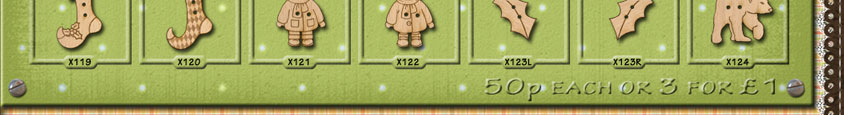 X119 Stocking 20mm x 33mmX120 Stocking 20mm x 33mmX121 Winter Boy 22mm x 32mmX122 Winter Girl 22mm x 32mmX123-L Holly Leaf 29mm x 14mm X123-L Holly Leaf 29mm x 14mm X124 Polar Bear 27mm x 25mm