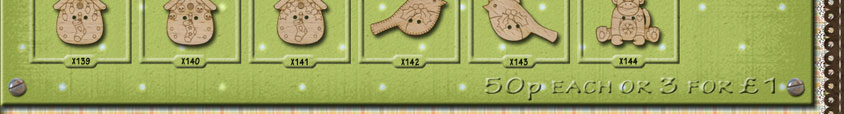 X139 Bird House Lights 23mm x 31mm X140 Bird House Baubles 23mm x 31mm X141 Bird House Stars 23mm x 31mm X142 Festive Robin 32mm x 23mm X143 Festive Robin 32mm x 23mm X144 Festive Sock Monkey 28mm x 31mm